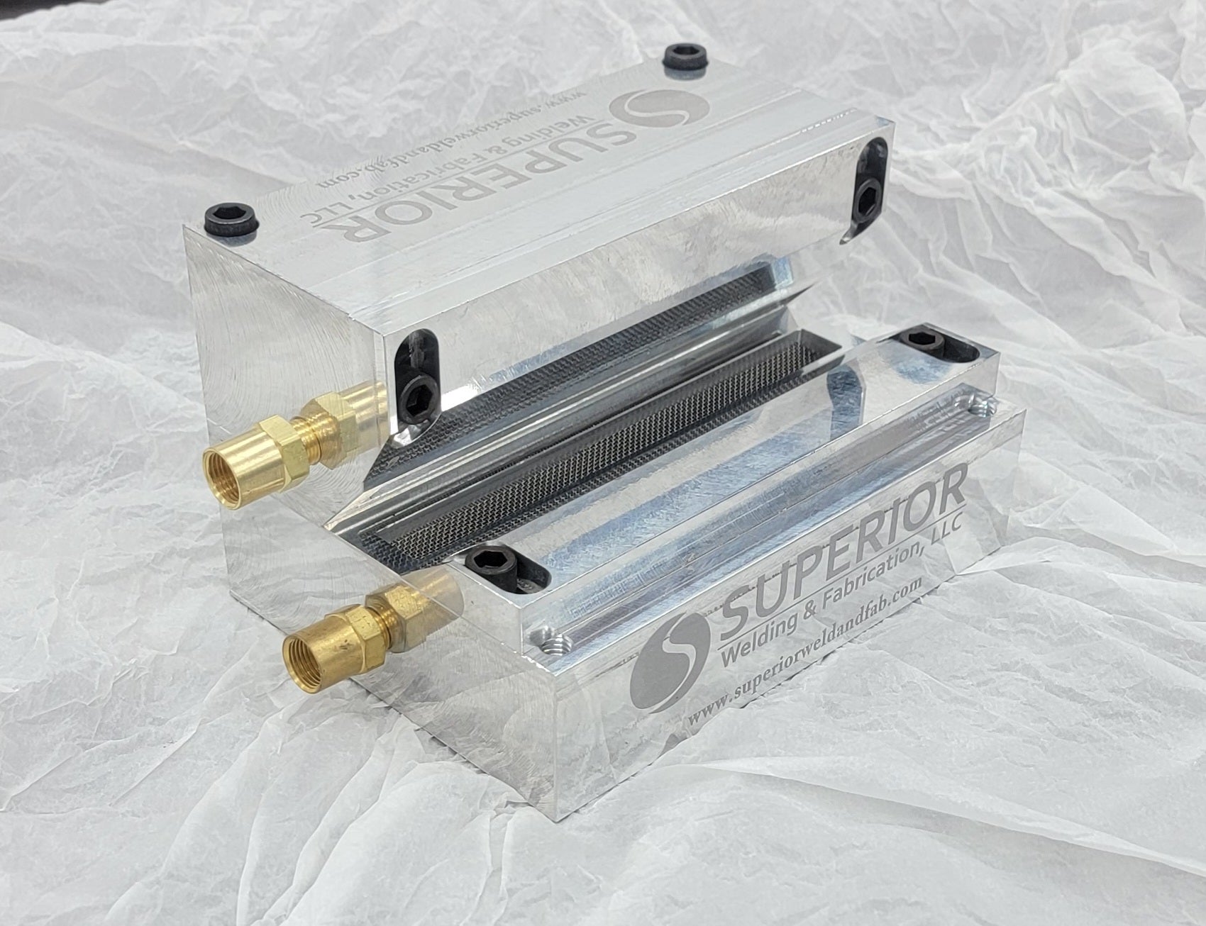 The Aluminum Weld Test Fixture/purge block from Superior is the answer to your fixturing and back purge needs for your welder qualifications and procedure testing. The billet 6061 aluminum Test Fixture uses our proprietary diffuser that evenly distributes your back purge gas eliminating the "spots" that can be seen in other designs. All hardware is included.